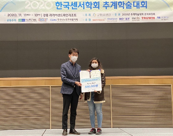 Pooja P. Kanade(기계공학과 박사과정생), 2020년 한국센서학회 추계학술대회 '최우수논문상' 수상