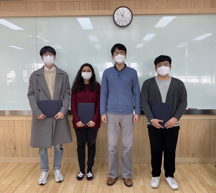 - 일시: 2021.02.19.(금) 오전 11시- 장소: 전남대학교 공과대학 1A-308호- 수상자: 우수논문 게재(대표 학생 CHANG MENGZHAO), 성적우수(대표학생 김주민), 영어능력 향상(대표학생 KANADE POOJA PARSHURAM)우리 교육연구단에서는 2020년 2학기 우수논문 게재 장학생 14명, 성적우수 대학원생 12명, 영어능력 향상 대학원생 1명을 선발하였으며, 코로나19로 인해 각