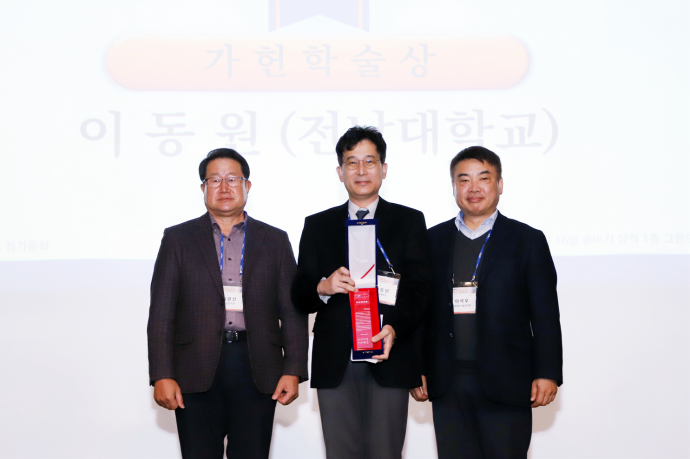 전남대학교 기계공학부 이동원 교수가 탁월한 연구업적을 인정받아 11월 15일~17일 쏠비치 삼척에서 개최된 2023년도 한국정밀공학회 추계학술대회에서 가헌신도재단이 수여하는 ‘2023년도 가헌학술상’을 수상했다.