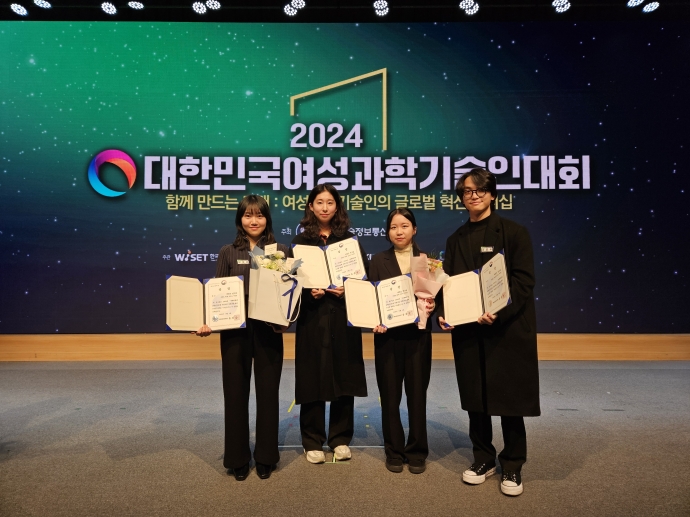 기계공학과 박정은 석사과정(지도교수 박진수)이 이끄는 공학연구팀(팀원 채원 석사과정, 김준수, 박경민 학사과정)이 지난 12월 6일 개최된 ‘2024 대한민국 여성과학기술인대회’에서 과학기술정보통신부 장관상을 수상했다.