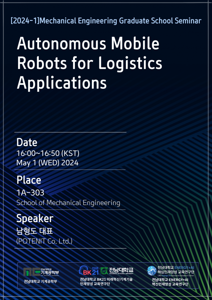 [2024-1 기계공학 대학원 세미나] 5.1. 남형도 대표, Autonomous Mobile Robots for Logistics Applications